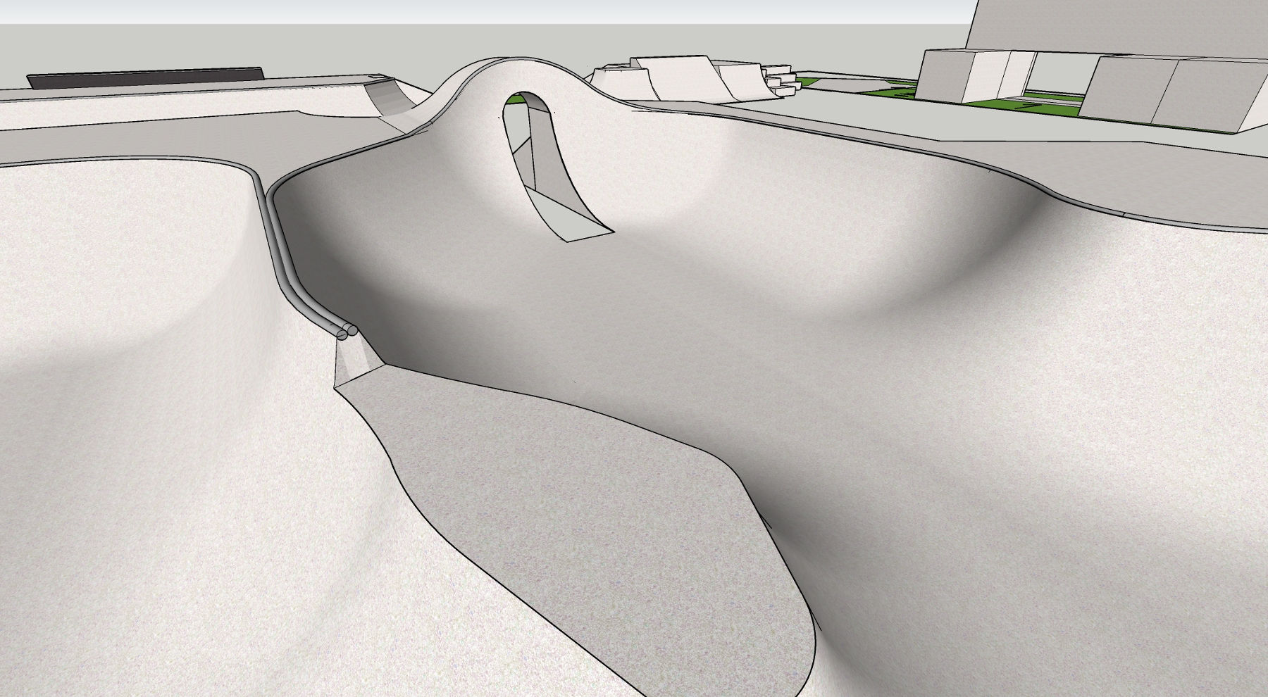 Die Ausrichtung der Rampen wird so konzipiert, dass verschiedene Bereiche entstehen, die zum einen gleichzeitig von mehreren Bikern und Skatern befahren werden können, ohne sich in die Quere zu kommen, zum anderen bleibt es möglich, bei weniger Betrieb die komplette Anlage durchgehend im Flow zu nutzen und endlose Lines zu fahren.